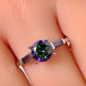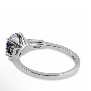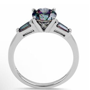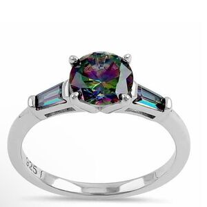 Sterling Silver Round and CZ Baguette Cut Rainbow Mystic Topaz Ring New