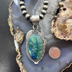 Sterling Southwestern Style Elongated Chrysocolla Decorated Pendant For Women