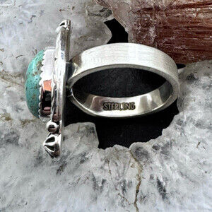 Gorgeous Sterling Silver Southwestern Style Oval Turquoise Decorated Adjustable Ring For Women.