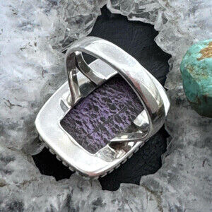 Sterling Silver Southwestern Style Purpurite Decorated Bar Ring For Women.