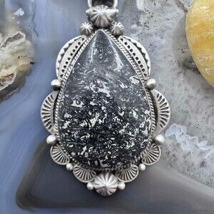 Sterling Silver Southwestern Style Teardrop Petrified Wood Decorated Pendant For Women.