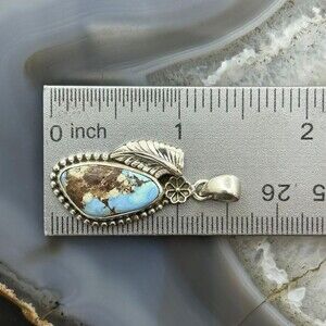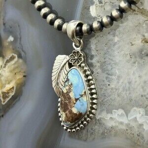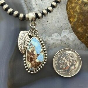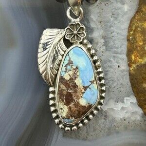 Sterling Silver Southwestern Style Triangular High Grade Golden Hill Turquoise Decorated Flower and Leaf Pendant For Women.