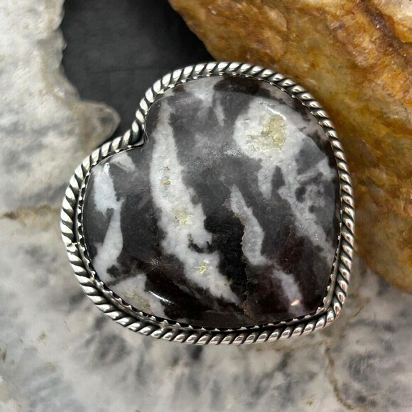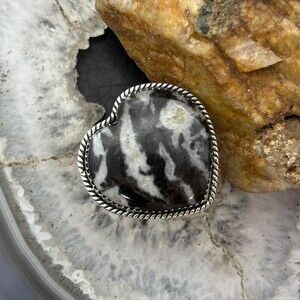 Sterling Southwestern Style White Buffalo Heart Shape Ring Size 7 For Women