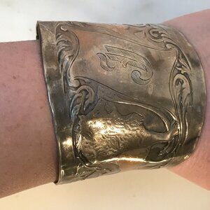 Sterling Spoon Ring Cuff Bracelet 925 Silver Lion Baroque Rococo Medieval Armor