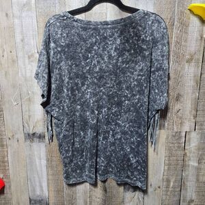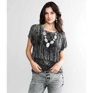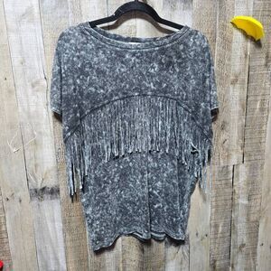Sterling & Stitch Buckle Grey Acid Wash Fringe Tee