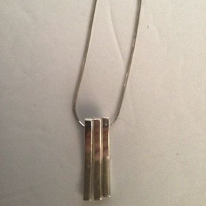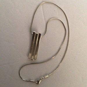 17-1/2” chain. Highly polished trio of individually bales 1-1/2” l x 3/8” wide moveable dangling bars.