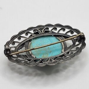 Sterling Turquoise Southwestern Brooch Pin Filigree 2in