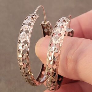 Vintage 1970's sterling silver open diamond cut hoop earrings. I believe these were made in Mexico. The earrings have been tested and confirmed as sterling silver 925.