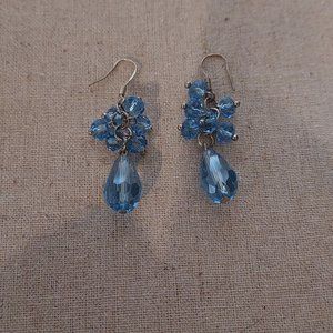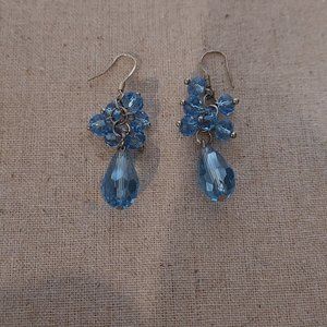Sterling wires ( marked on wire ) with blue cut crystal babbles and beads drop earrings 2" drop. Clean and ready for wear