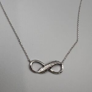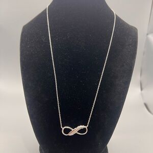 Beautiful and timeless infinity pendant on a delicate sterling silver chain. Piece is genuine 925 sterling silver and stamped for authenticity. Perfect for everyday wear or as a meaningful gift.