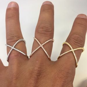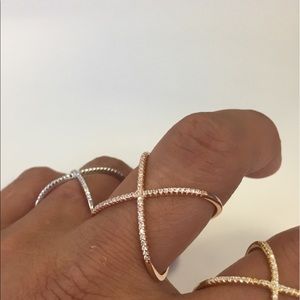 Sterling silver 925 criss cross cz ring 2 mm stones very nice to your finger fashion ring available in 3 colors white gold rose gold and yellow gold just message me for the colors .rhodium for anti turnish .