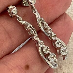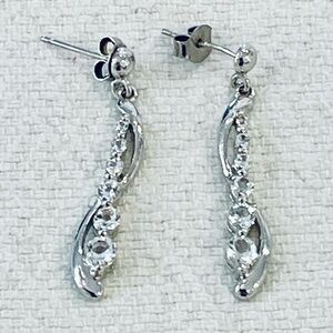 Sterling silver 925 elegant multiple czs in a long row dangle drop earrings