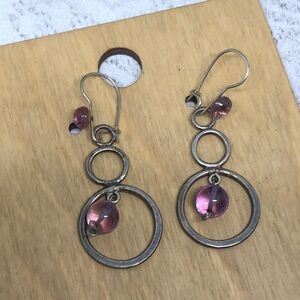 All metal parts of the earrings tested for sterling. Purple dangle is POSSIBLY amethyst, I haven't looked at it close.