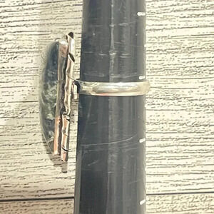 Beautiful sterling silver ring that is sterling silver over bronze. This is not a solid sterling silver piece and has been tested. Never been worn just tested. On the back of the band, you will see a small section from the scraping of it being tested, revealing a little bit of bronze. I am selling this as a costume jewelry piece even though the stone is genuine. This is Kombaba Jasper, and it is very unique.