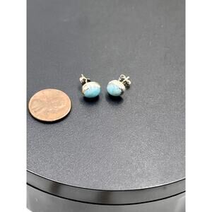Sterling silver Bezel Set Blue Larimar Cabochon Small Stud Earrings