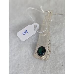 Sterling silver Paua shell cabochon bezel set French wire 2.25"X .50"Dangle OOAK