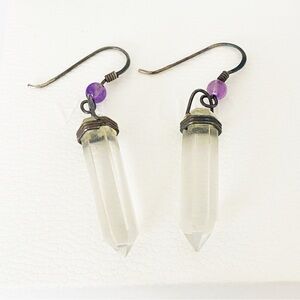 Sterling silver amethyst crystal point drop earrings. Sterling silver earrings with amethyst bead and a clear crystal faceted drop. Really cool! Witchy boho vibe. Perfect for Halloween. Excellent condition. Silver has some natural patina that can be polished as desired.