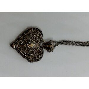 Sterling silver and 14k gold details Dmc hefty filigree heart rope necklace.