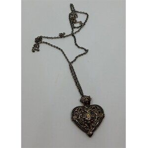 Sterling silver and 14k gold Dmc hefty filigree heart rope necklace romantic.
