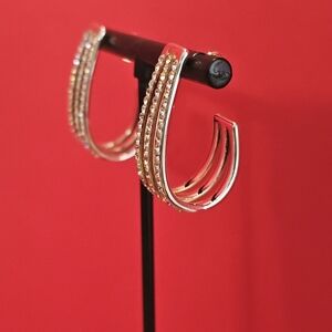 Sterling silver and crystal J-hoop earrings. Friction backs. Never worn.