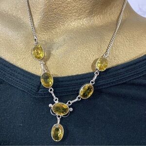 Sterling silver and simulated gemstone (Citrine) drop necklace