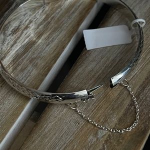Beautiful 925 sterling silver bangle bracelets ! I have three there all identical brand new and retail on the bangle is 200 dollars each so your getting an amazing deal ! Sold individually ! They have security chains in case it ever comes undone you won’t lose it.