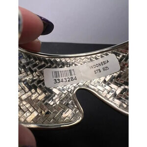 Genuine Sterling silver. Flexible braided cuff style bracelet made in Indonesia. 925 total weight is 34.29 grams. No hallmark found.