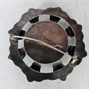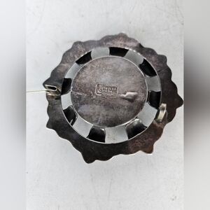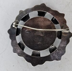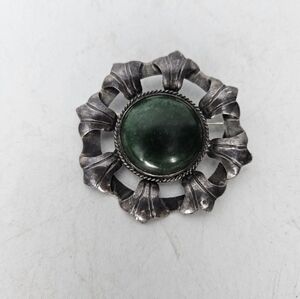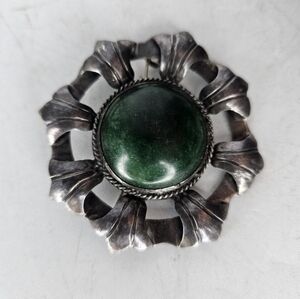 Sterling silver brooch with a green onyx cabochon. Made in Mexico