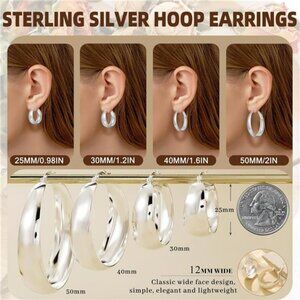 Secure Closure:Available in multiple sizes 20/30/40/50mm, these large silver hoop earrings cater to your daily styling needs. The secure click-top clasp ensures easy wear and removal, while silver chunky earrings for women the classic design, making thick silver hoops earings suitable for both casual and formal occasions.