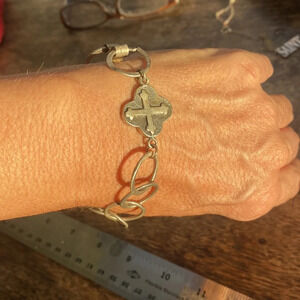 Sterling silver circle link cross bracelet