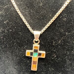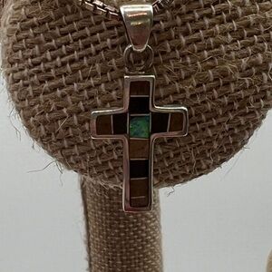 Sterling silver cross pendant on 925 AGI Italy sterling silver chain