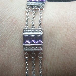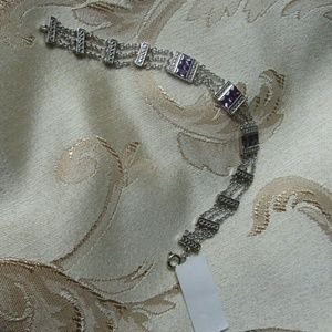 Sterling silver link Chain cubic zirconia purple spring ring lock bracelet