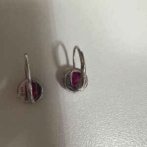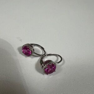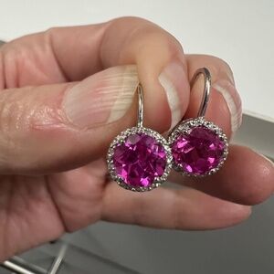 Sterling silver, diamond and pink quartz earrings. Measure 3/4 of an inch. Lever backs.