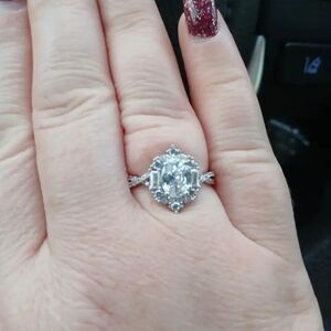Sterling Silver S925 Bohemian Luxe Style Goose Egg Shaped Engagement Ring with simulated diamonds Cubic Zirconia. For Women, Proposal And Wedding Jewelry makes the perfect gift for someone special.