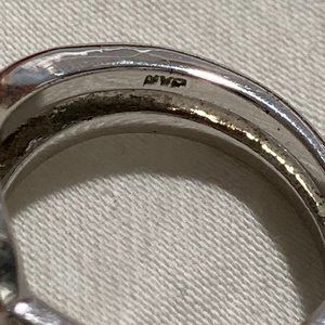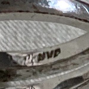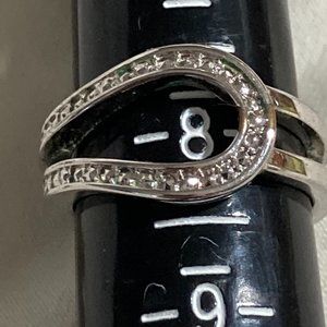Sterling silver double band and rhinestones ring. In good condition, see photos. Mark looks like NWP. About a size 8.
