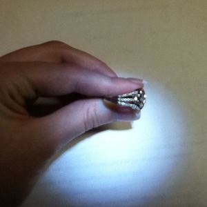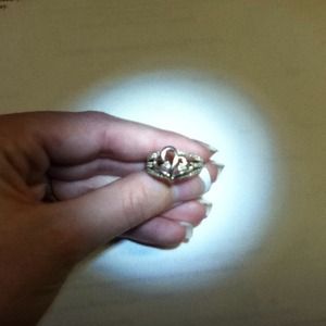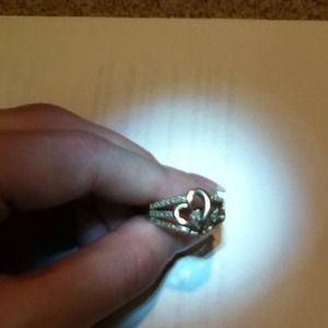 Sterling silver ring with two hearts and small cubic zirconia embellishments. Comment any questions.