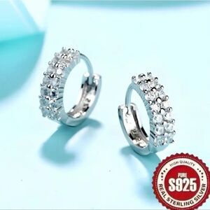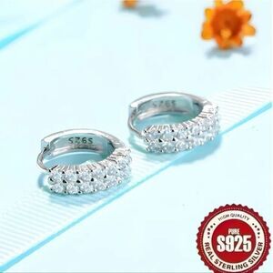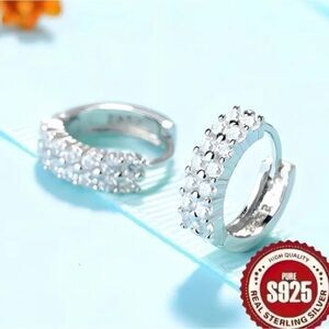 S925 Sterling Silver double row Earrings - simulated diamond Design - Simple Elegance - Sparkling shine will certainly turn heads.These earrings makes the perfect gift 100% hypoallergenic 100% nickel free suitable for everyday wear.
