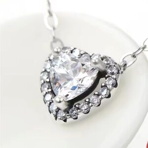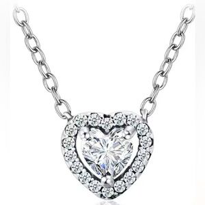 Sterling silver halo design heart pendant necklace 925 sterling with clear cz wedding jewelry Valentine’s Day gift