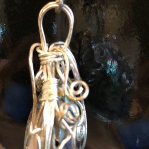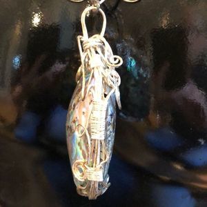 Sterling silver handmade chunky chain huge lobster claw enclosure alabaster and silver one of a kind 25 inches long main shell is 3 1/2 inches long 2 inches wide
