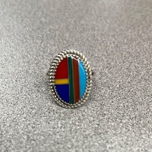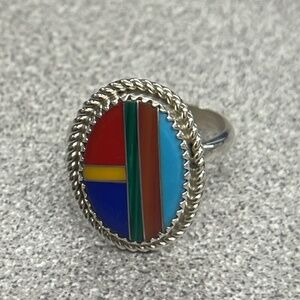 Size 8.5 Sterling (stamped on back) Beautiful inlay work