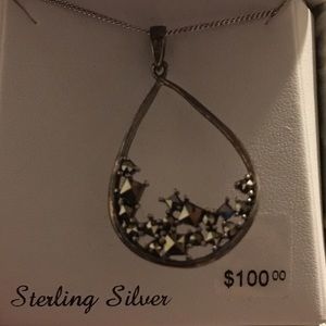 Sterling silver genuine marcasite open teardrop pendant. Brand new, in original box.