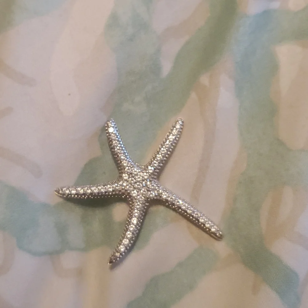 this is a beautiful sterling silver seastar pendant with cz accent. there is no chain but the bezel will allow any chain to be added