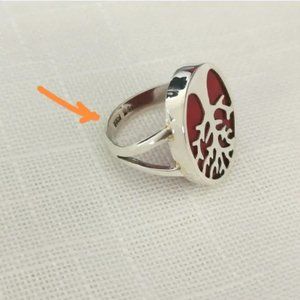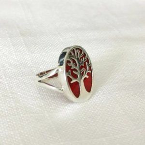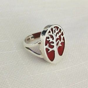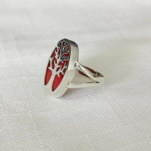 Sterling silver red sponge coral Tree of Life ring size 6 🆕