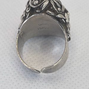 This is a gorgeous ring with a white stone sterling silver . The back is open so it can be adjusted this beauty was made in Israel sizes 8 . This ring catches the eye Immediately .