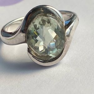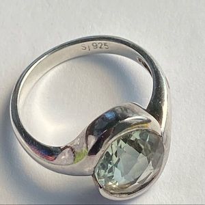 Sterling silver bezel set pastel green Quartz ring sometimes called green amethyst