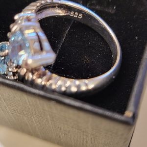 gorgeous solid sterling silver ring size 7 with blue topaz and cz stones