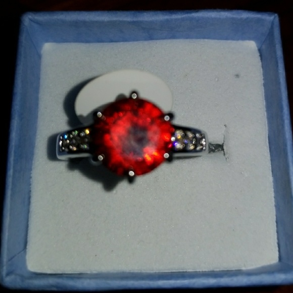 Sterling silver ruby ring with cubic zirconia crystals. BRAND NEW NEVER WORN. NWT. Very pretty