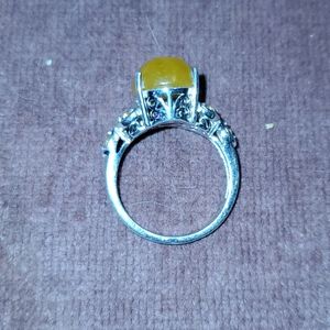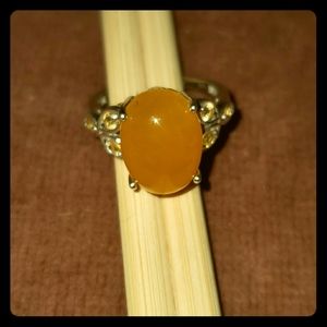 Beautiful Yellow Jade 11.95 ct ring. The semi-precious crystals on each side of the ring are citrine... Totally Vintage