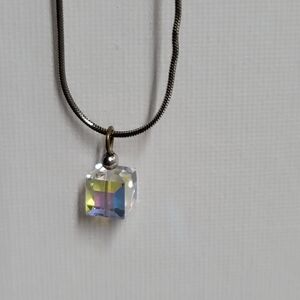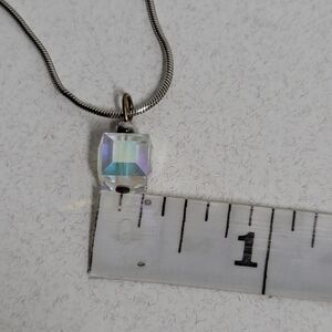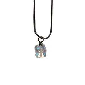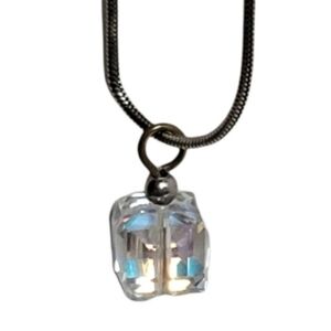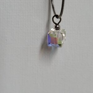 Sterling silver snake chain necklace with prism cube charm