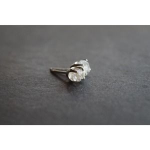 Sterling silver stud earrings, alternative diamond, uncut natural gemsto…